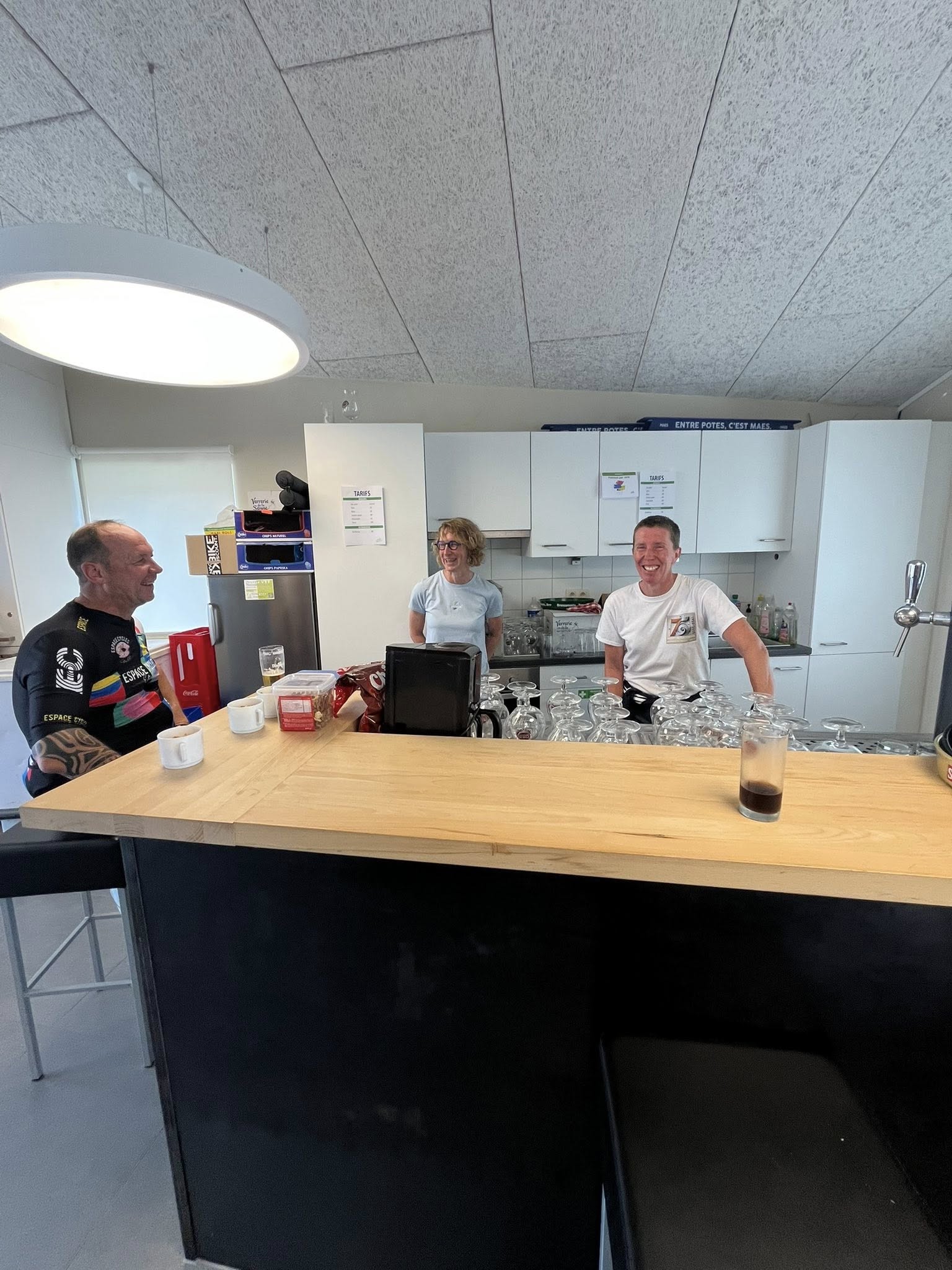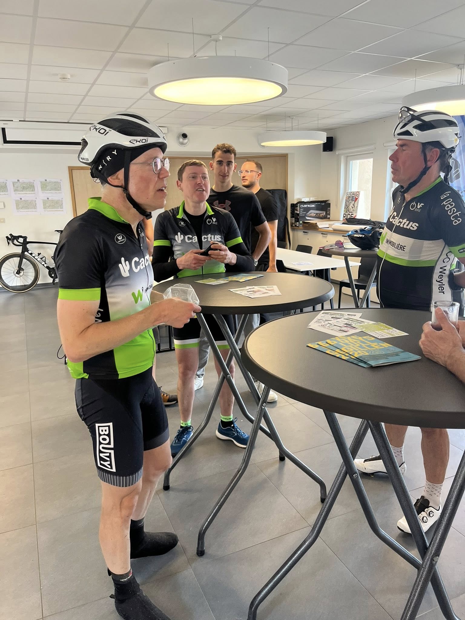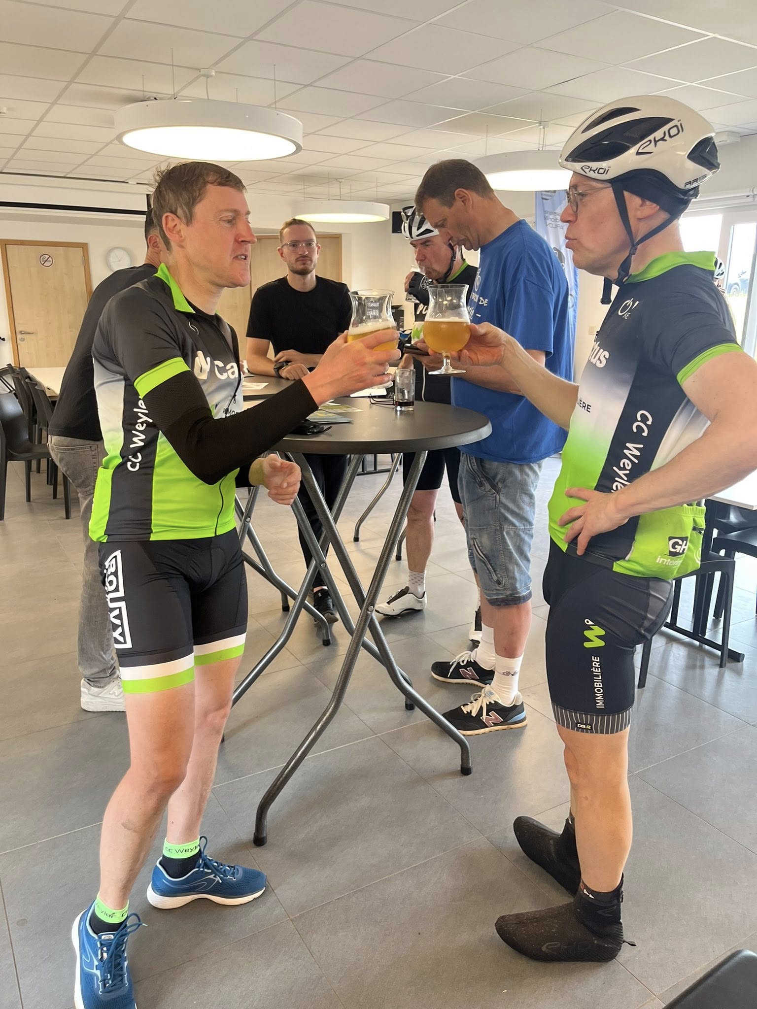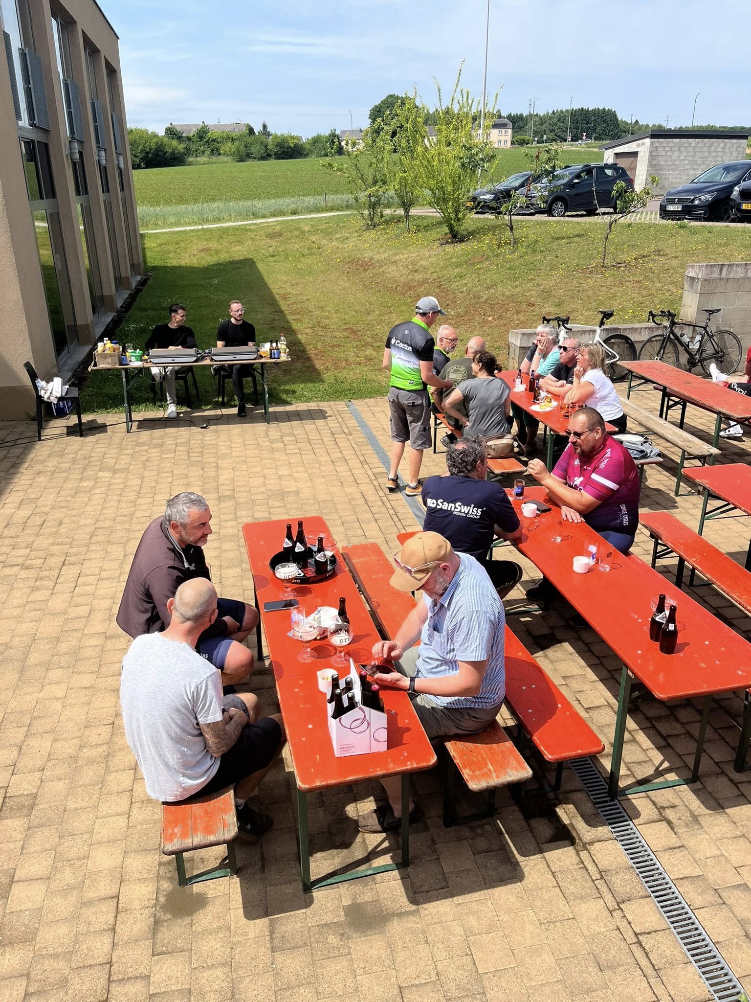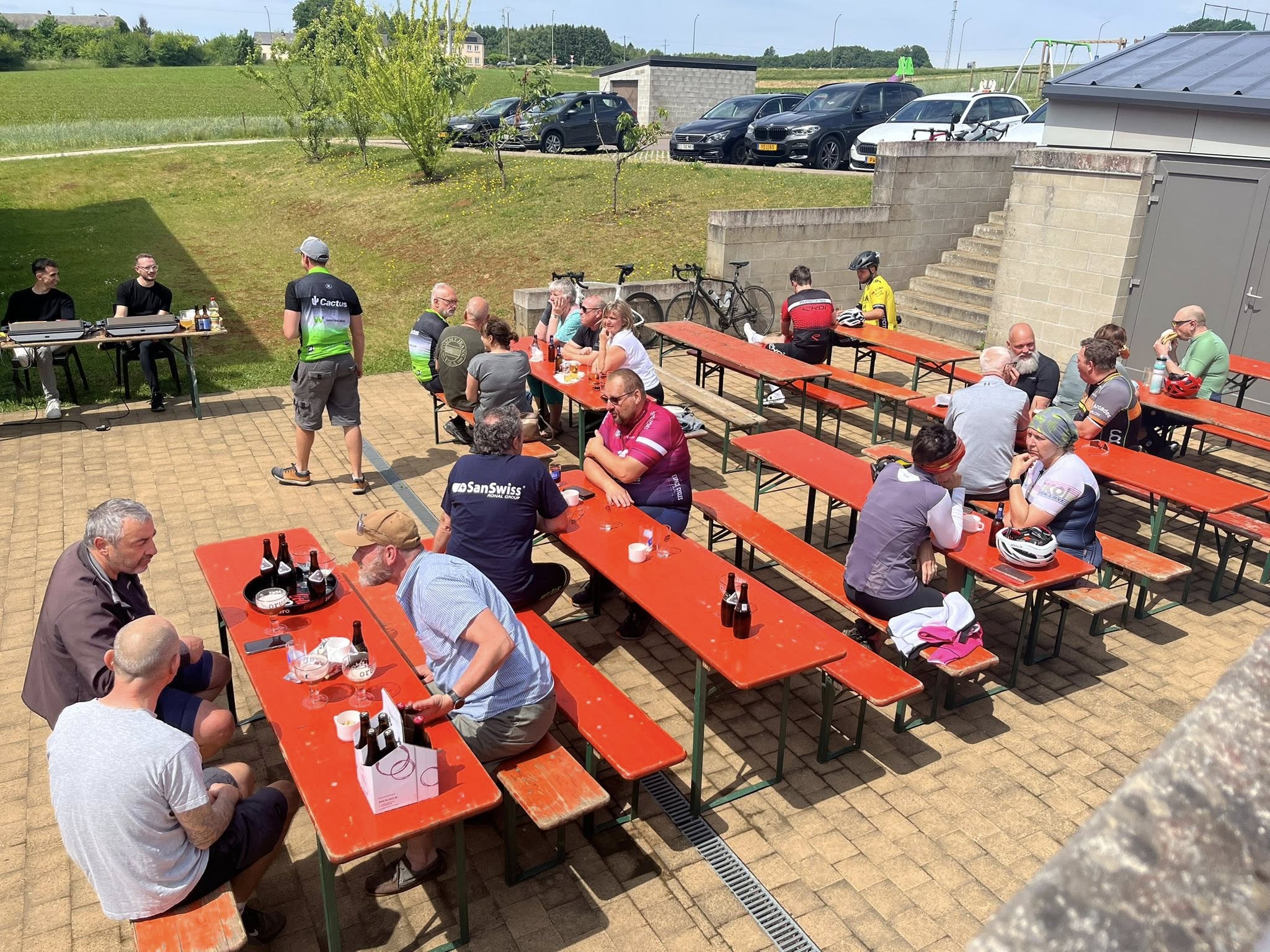 A midi, alors que la chaleur se faisait de plus en plus sentir, nous recensions 292 inscrits. Mais l'orage a commencé à gronder et les premières gouttes sont apparues vers 14.00 heures. Même si la région de Weyler était relativement épargnée, le déluge s'est abattu sur les cyclos qui terminaient les longs parcours du matin et sur les 7 inscrits de l'après-midi. Les rescapés se sont cependant attardés au bar pour se remettre de leurs émotions.