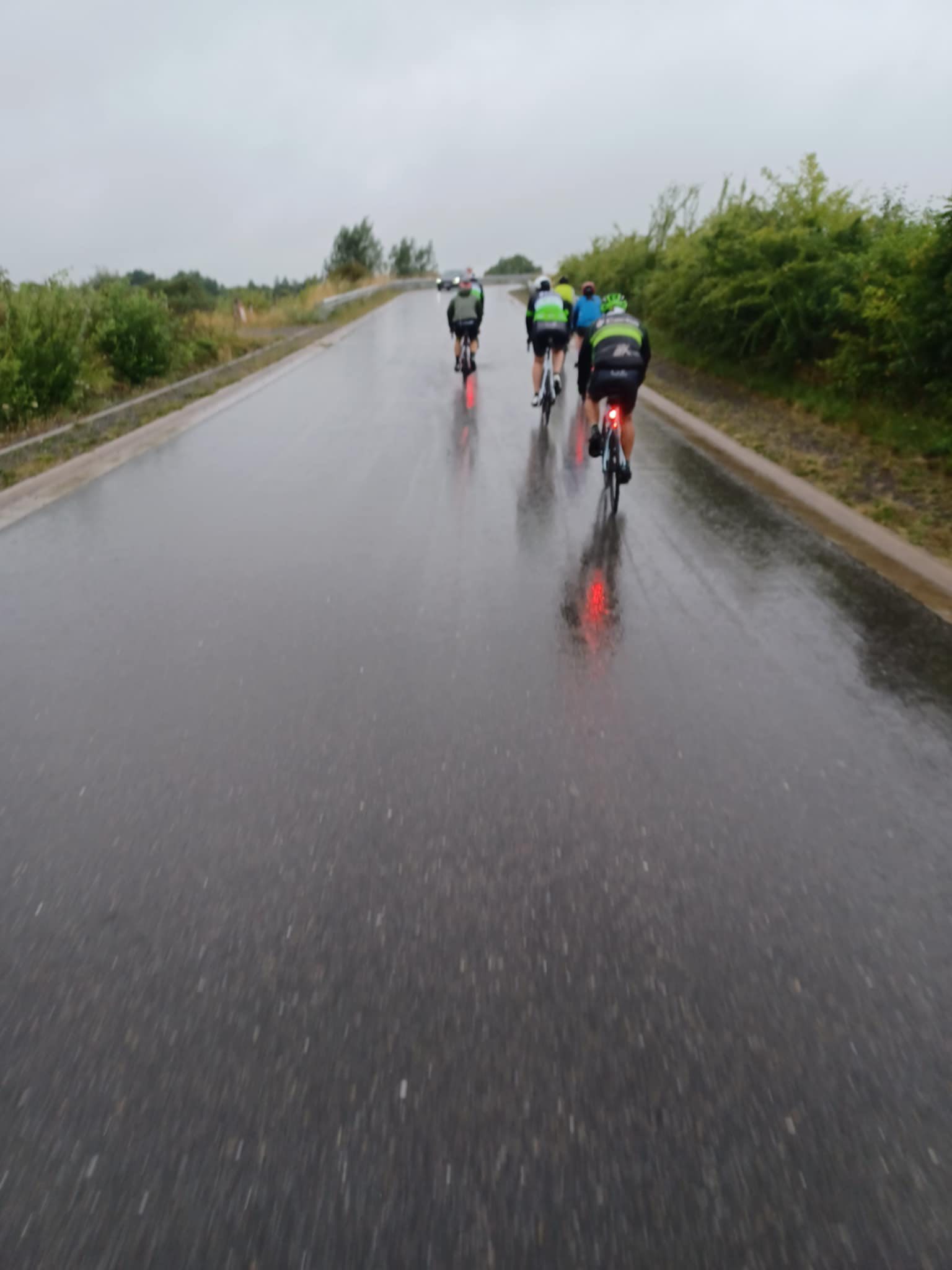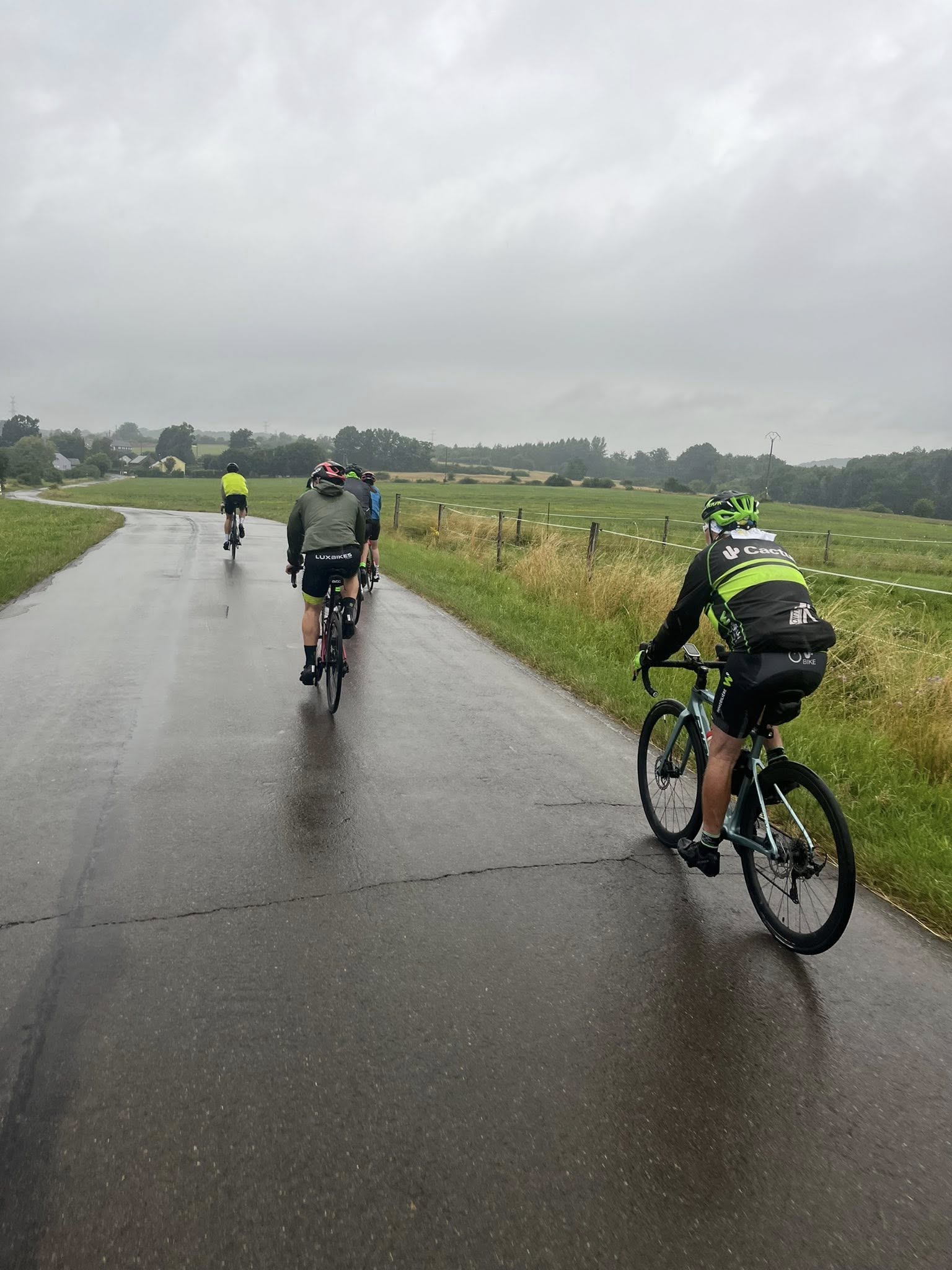 Par souci de sécurité (et pour ne pas finir congelés !), nous avons collectivement opté pour le petit parcours de 46 km. Malgré les gouttes, le froid et l’ambiance détrempée, le groupe a tenu bon. Bonne humeur, solidarité, bienveillance… Un immense merci à tous les participants pour leur présence, leur mental d’acier et leur sourire malgré les caprices du ciel ! C’est ça aussi, l’esprit club!