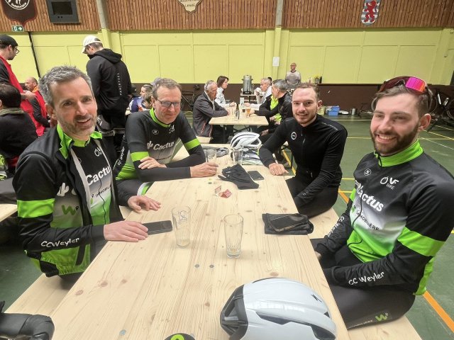 Les groupes A et B se sont lancés sur le parcours de 79 km, tandis que les groupes C et D ont opté pour une distance de 55 km, permettant à chacun de rouler selon son niveau. Bravo à tous les participants pour l’effort dans ces conditions ! Un grand merci également au C.C. Bellefontaine pour la qualité de l’organisation.