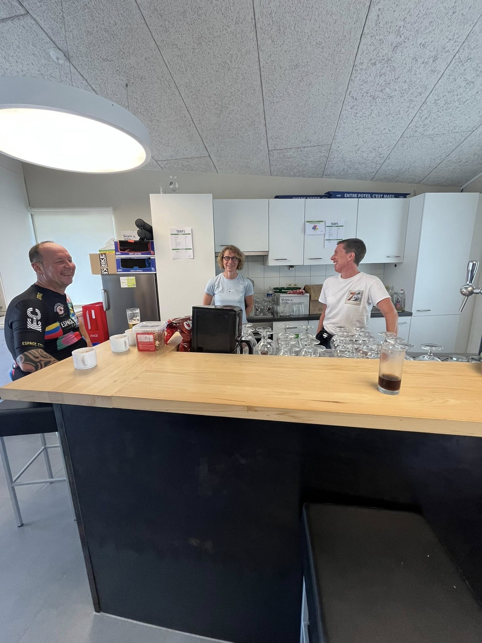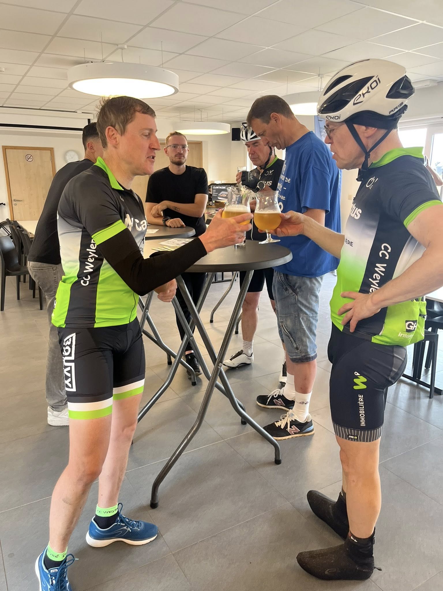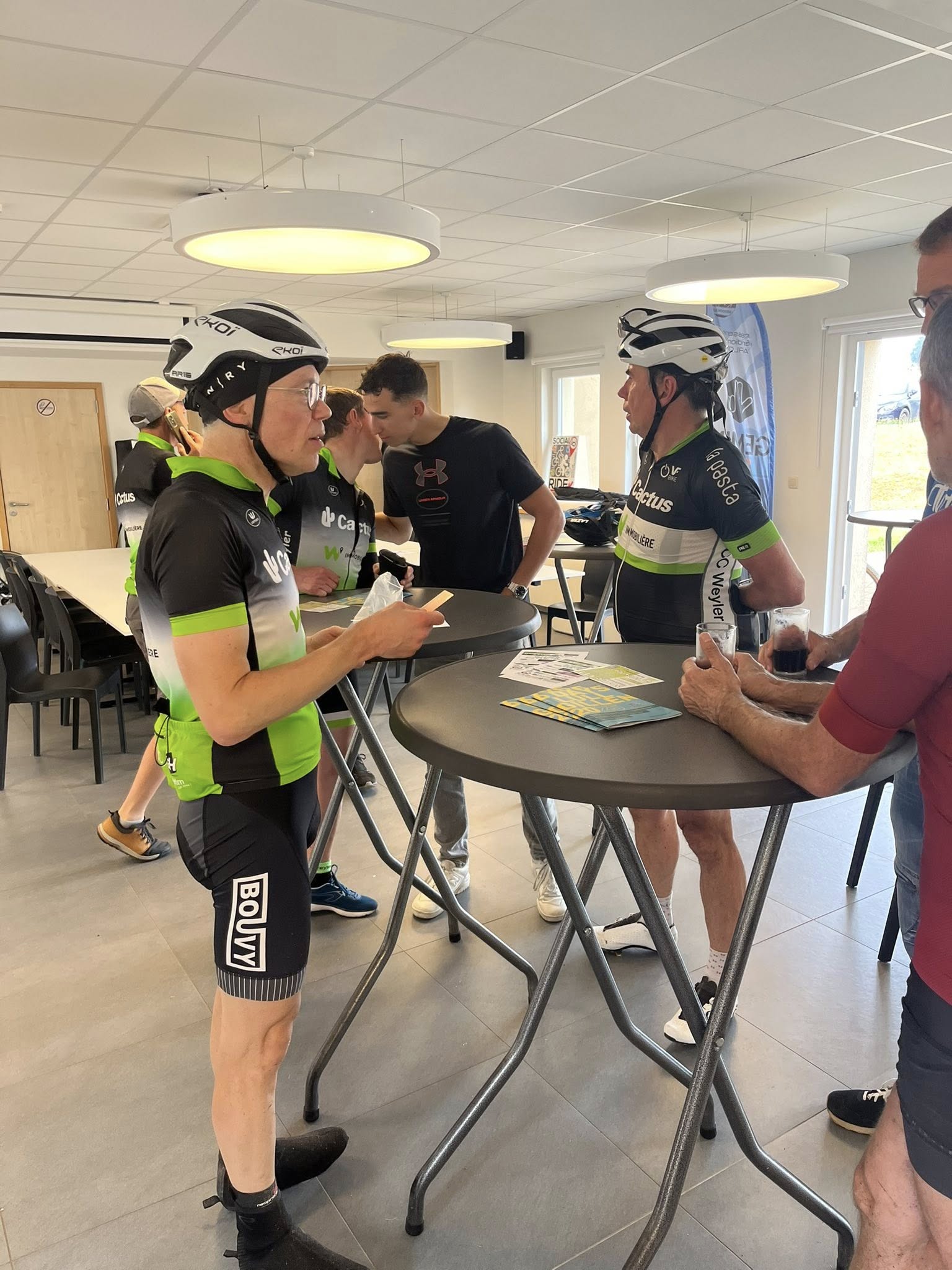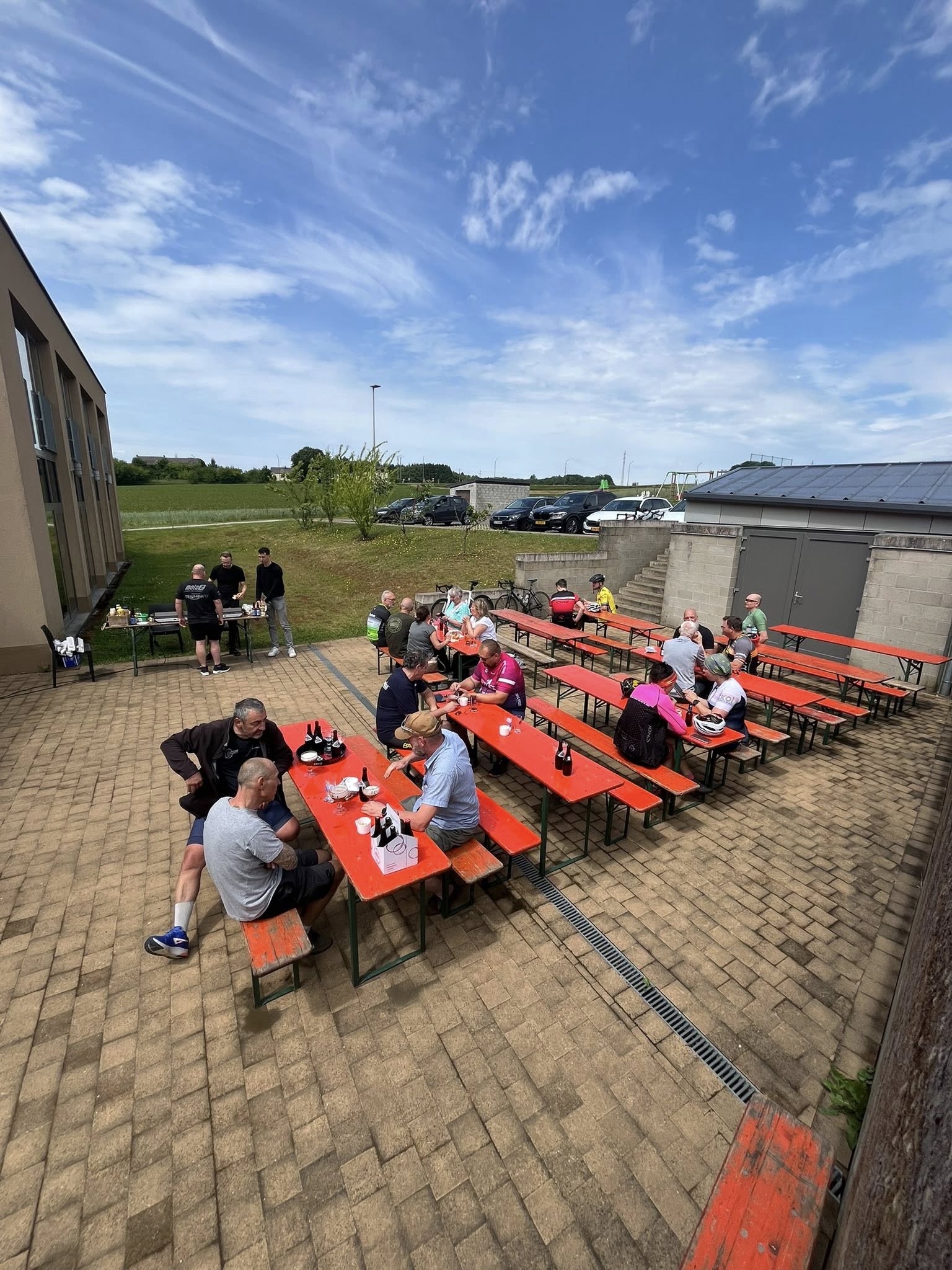 A midi, alors que la chaleur se faisait de plus en plus sentir, nous recensions 292 inscrits. Mais l'orage a commencé à gronder et les premières gouttes sont apparues vers 14.00 heures. Même si la région de Weyler était relativement épargnée, le déluge s'est abattu sur les cyclos qui terminaient les longs parcours du matin et sur les 7 inscrits de l'après-midi. Les rescapés se sont cependant attardés au bar pour se remettre de leurs émotions.